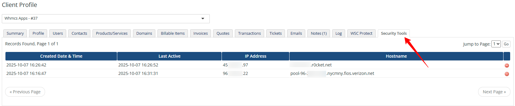 WHMCS Security Tools Screenshot